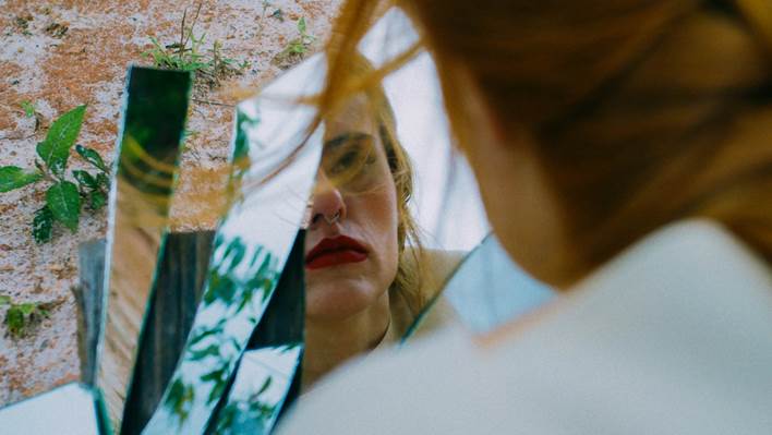 A obra começa com a imagem solitária de uma mulher diante de uma paisagem árida, pintando os lábios em um ritual íntimo e quase sagrado. A falta de cor ao redor não é acaso: é o retrato de sua prisão criativa e emocional.